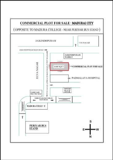 : COMMERCIAL LAND FOR SALE IN MADURAI ,MADURA COLLEGE OPPOSITE LENGTH 72 FEET, WIDTH 23 FEET, FRONT SIDE ROAD 45 FEET WIDTH MAIN ROAD, RATE AS 12000 PER SQFT , CORPRATION APPROVAL FOR CONSTRUCTION OF NEW BUILDING , P.K.ALEXANDER ,CELL NO 9790920733