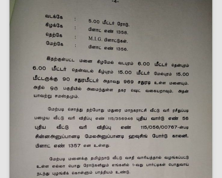 : MADURAI,ANUPPANADI HOUSING BOARD PROPERTY NAGAMMALKOVIL ST,OPP ROAD OF MOTHER TERESA SCHOOL NORTH 6MTR 15MTR 19.658 49.2126 SQ.FTSUTABLE FOR HOUSE ARE GODOWN
